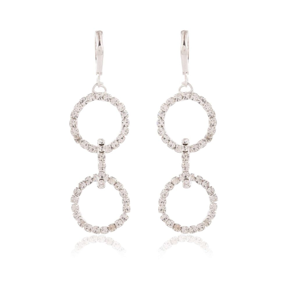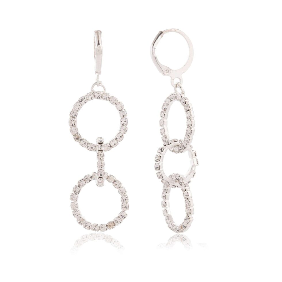 Women’s Silver Circle Long Three Rhinestone Unique Western Earrings for Women Party Wear